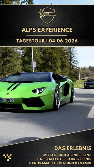 Die Mischung machts! Das ist die Touren-Philosophie von Stardrive Experience. Zum Einen bei angenehmer Fahrweise die traumhaft gelegenen Seen- und Berglandschaften genießen und diese auf sich wirken lassen. Zum Anderen die dynamische und sportliche Fahrweise auf unseren kurvenreichen Pässen & Strecken. Somit kombinieren wir den Fahrspaß mit einem sehenswerten Panorama-Erlebnis auf unseren Sportwagentouren.